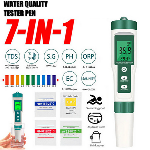 Ensure your family’s water is clean and safe with this 7-in-1 Digital Water Quality Tester. Compact, lightweight, and easy to use, this handheld device accurately measures multiple water quality parameters, including pH, EC, TDS, ORP, salinity, specific gravity, and temperature. Perfect for use in homes, aquariums, swimming pools, hydroponics, and laboratories.