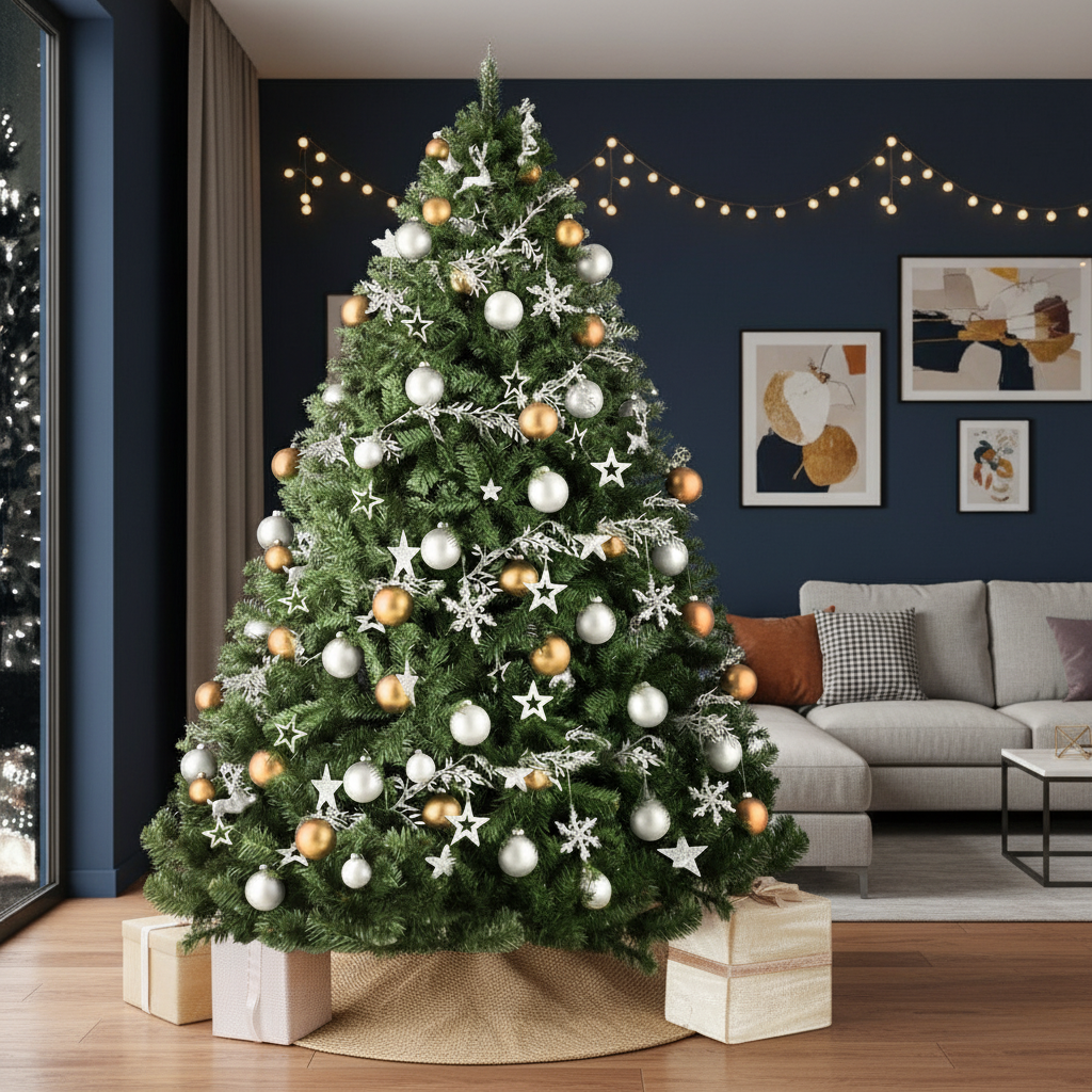 - 1 x 7ft Green Fir Christmas Tree with metal stand