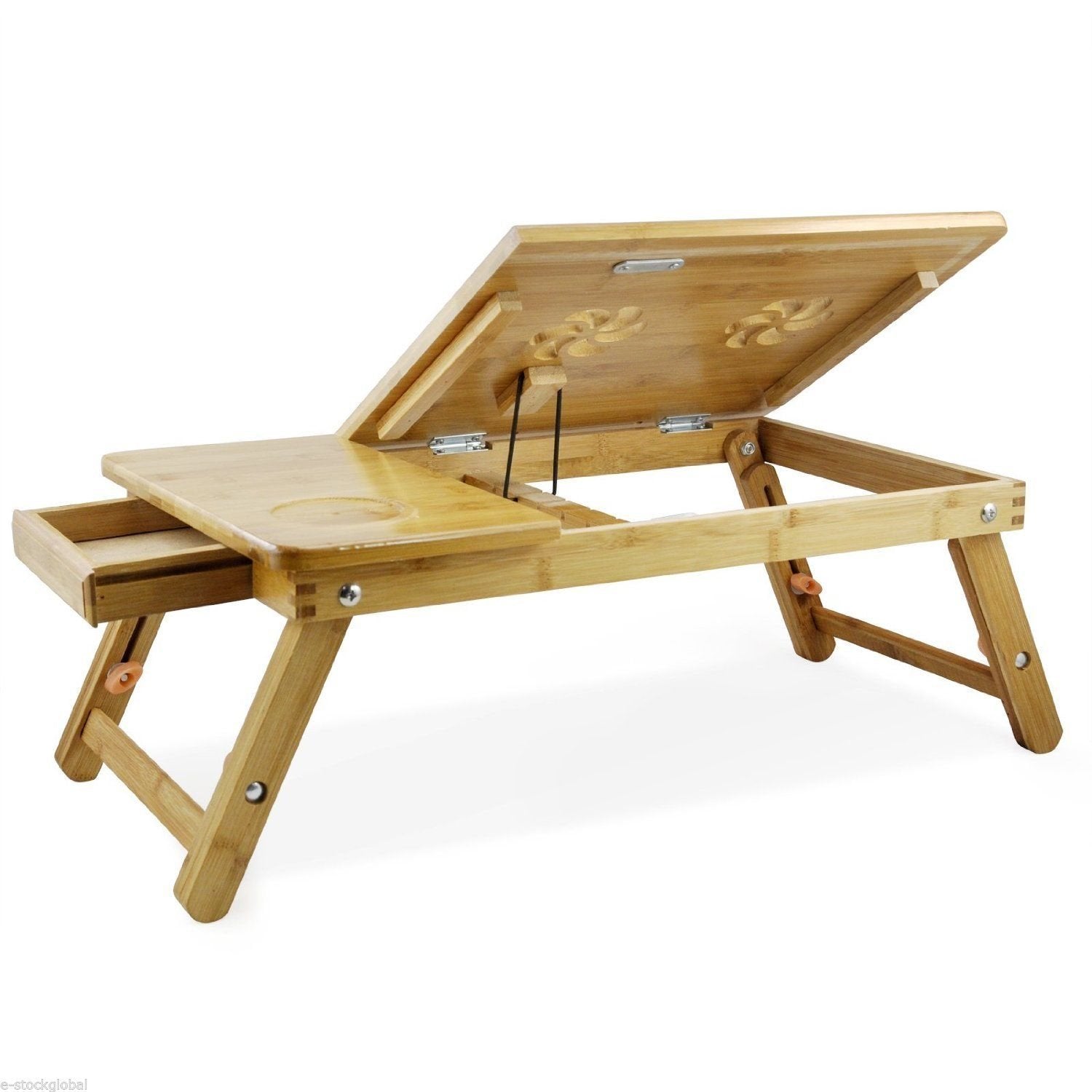 The tilt-adjustable desktop offers six angle settings, giving you the comfort you need for typing, reading, or writing. Crafted from natural bamboo, the surface is sturdy yet lightweight, with a stylish swirl-cut ventilation design to help keep your laptop cool. When not in use, simply fold the table flat for compact storage or transport.
