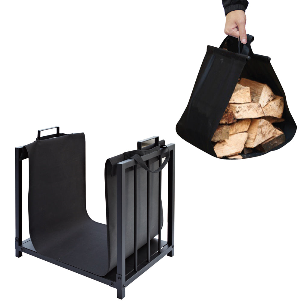 - Sturdy black steel frame - standing base holds wood by itself or inside the tote bag; durable tubular design for easy storage